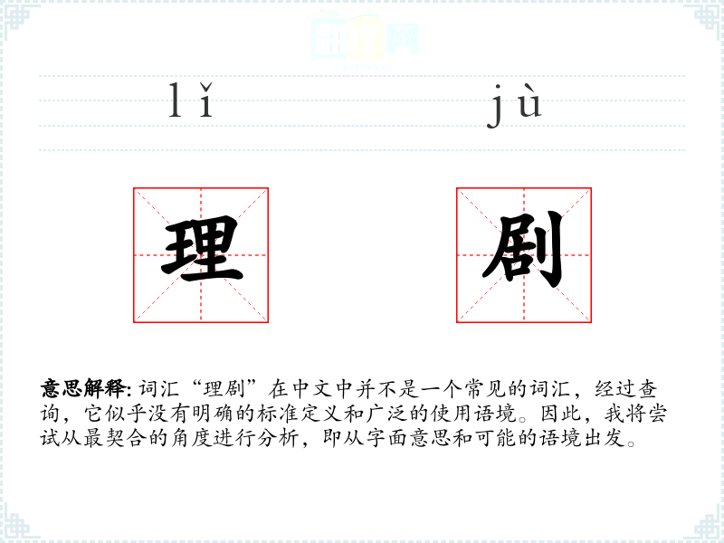 词汇“理剧”在中文中并不是一个常见的词汇,经过查询,它似乎没有明确的标准定义和广泛的使用语境。因此,我将尝试从最契合的角度进行分析,即从字面意思和可能的语境出发。