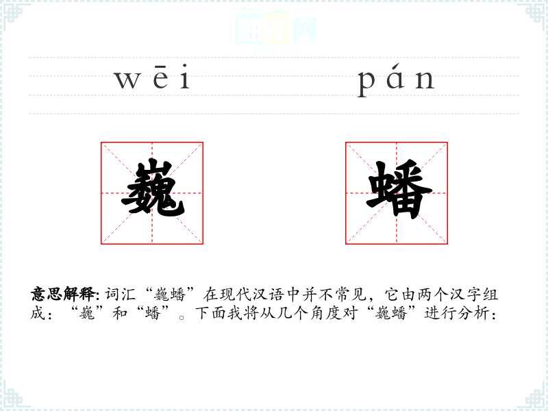 词汇“巍蟠”在现代汉语中并不常见,它由两个汉字组成:“巍”和“蟠”。下面我将从几个角度对“巍蟠”进行分析: