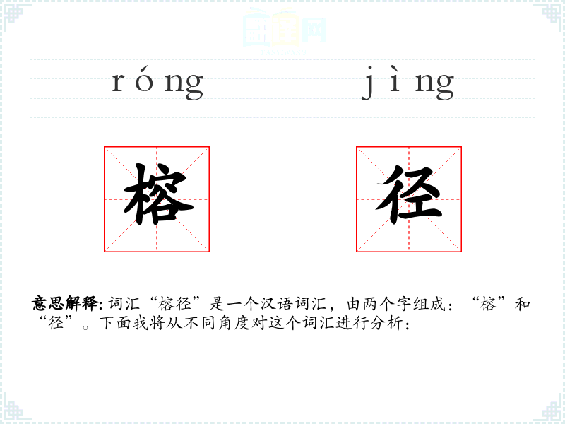 词汇“榕径”是一个汉语词汇,由两个字组成:“榕”和“径”。下面我将从不同角度对这个词汇进行分析: