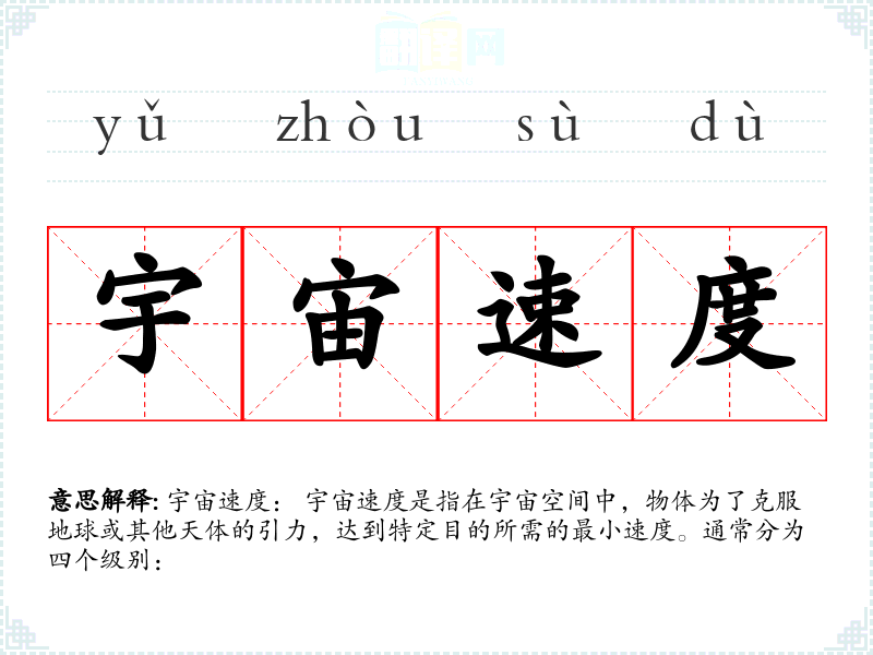 不同语言:在不同语言中,宇宙速度的表达可能有所不同,但其基本概念和应用是相似的。