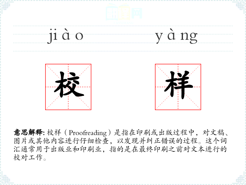 校样(Proofreading)是指在印刷或出版过程中,对文稿、图片或其他内容进行仔细检查,以发现并纠正错误的过程。这个词汇通常用于出版业和印刷业,指的是在最终印刷之前对文本进行的校对工作。
