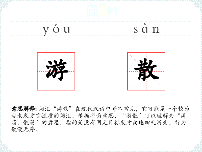 "游散"的意思解释、游散是什么意思由翻译网汉语词典查词提供。