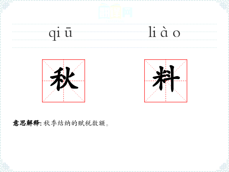 秋料的分字解释