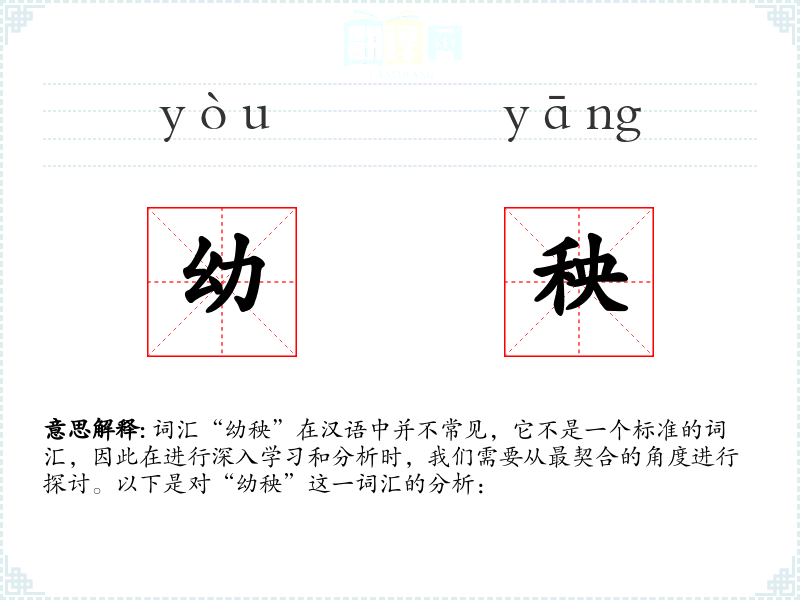 词汇“幼秧”在汉语中并不常见,它不是一个标准的词汇,因此在进行深入学*和分析时,我们需要从最契合的角度进行探讨。以下是对“幼秧”这一词汇的分析: