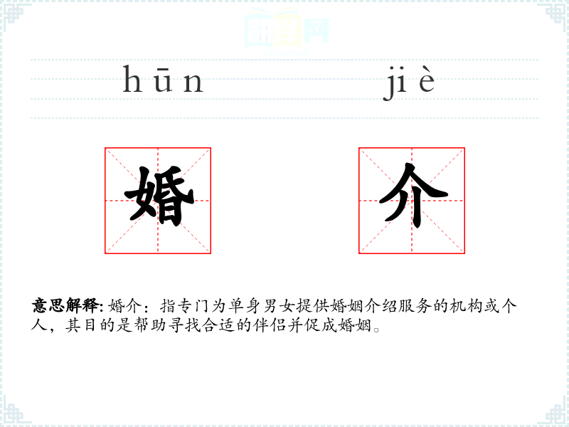 "婚介"的意思解释、婚介是什么意思由翻译网汉语词典查词提供。