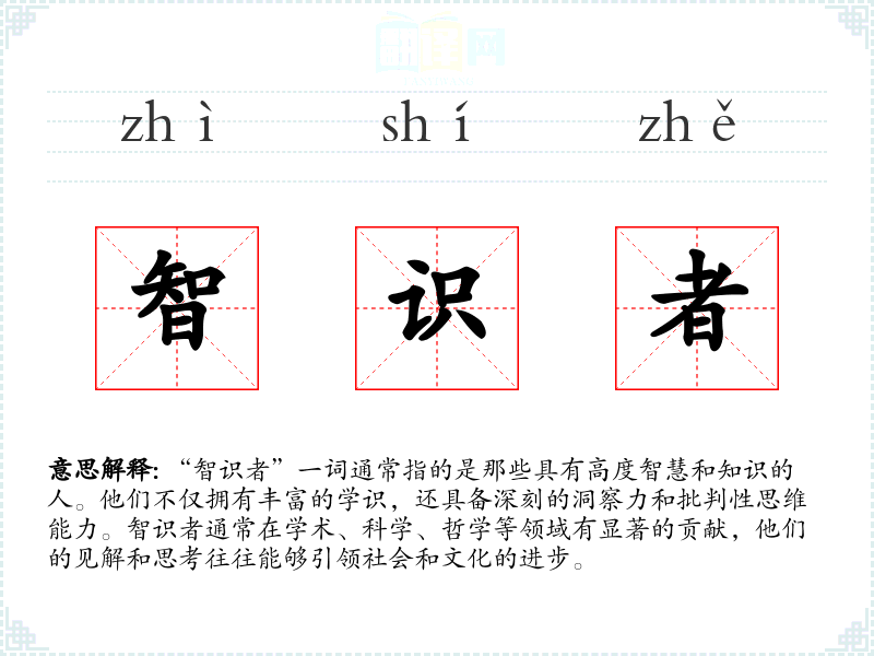 “智识者”一词通常指的是那些具有高度智慧和知识的人。他们不仅拥有丰富的学识,还具备深刻的洞察力和批判性思维能力。智识者通常在学术、科学、哲学等领域有显著的贡献,他们的见解和思考往往能够引领社会和文化的进步。
