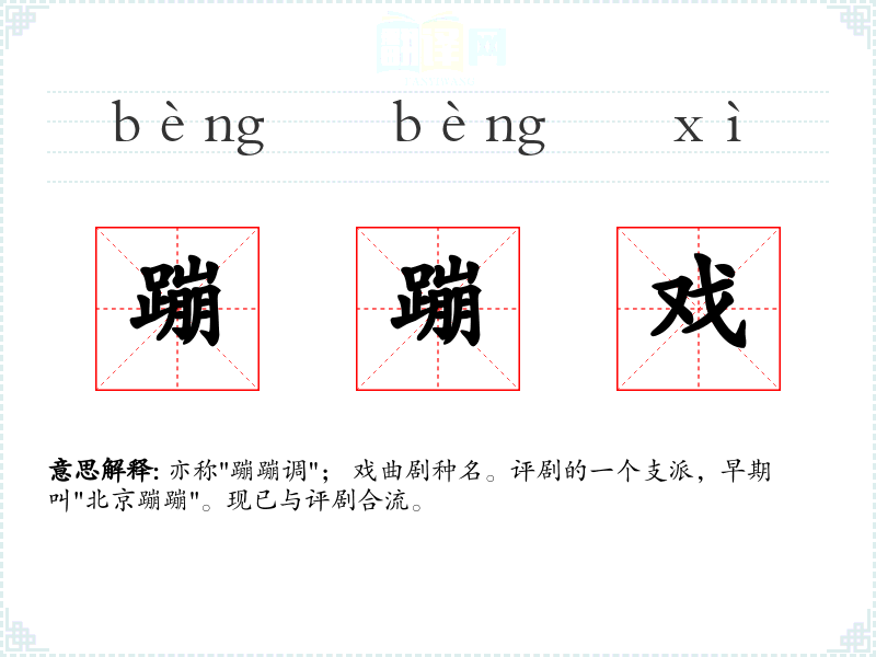 亦称"蹦蹦调"; 戏曲剧种名。评剧的一个支派,早期叫"北京蹦蹦"。现已与评剧合流。