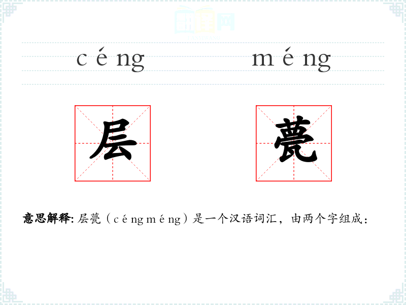 - 同义词:层叠、层峦、层楼