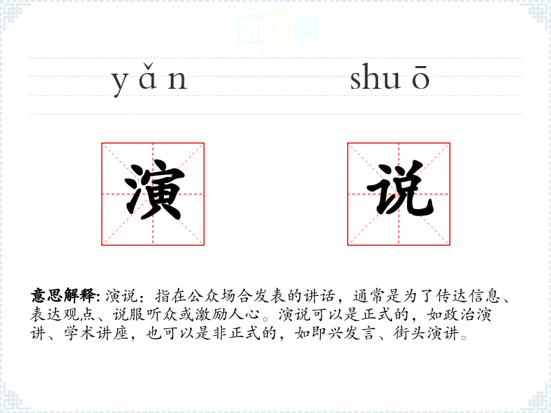 "演说"的意思解释、演说是什么意思由翻译网汉语词典查词提供。