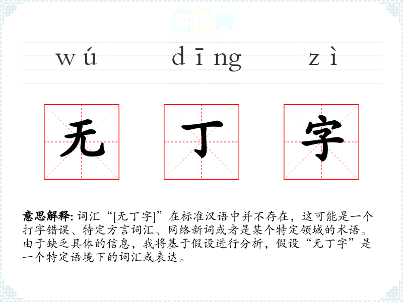 由于“无丁字”不是一个标准词汇,对其的理解和应用需要基于具体语境。在语言学习和表达中,了解特定领域或社群的术语是非常重要的,这有助于更准确和有效地沟通。