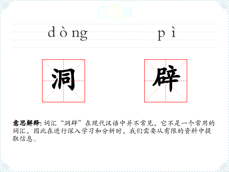 词汇“洞辟”在现代汉语中并不常见,它不是一个常用的词汇,因此在进行深入学*和分析时,我们需要从有限的资料中提取信息。