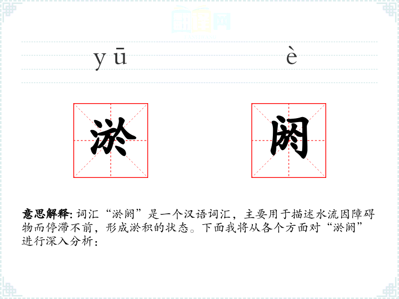 词汇“淤阏”是一个汉语词汇,主要用于描述水流因障碍物而停滞不前,形成淤积的状态。下面我将从各个方面对“淤阏”进行深入分析: