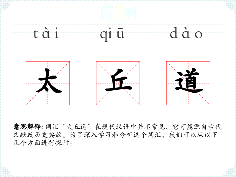 词汇“太丘道”在现代汉语中并不常见,它可能源自古代文献或历史典故。为了深入学*和分析这个词汇,我们可以从以下几个方面进行探讨: