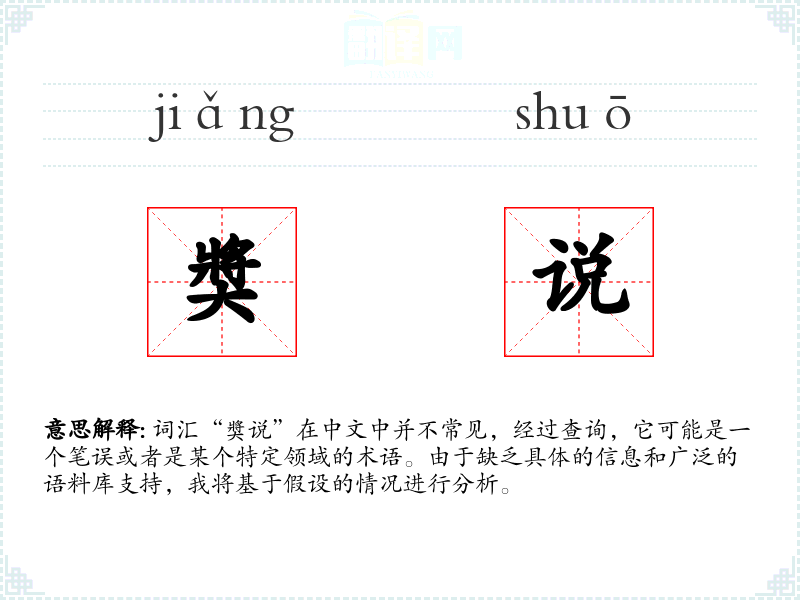 词汇“奬说”在中文中并不常见,经过查询,它可能是一个笔误或者是某个特定领域的术语。由于缺乏具体的信息和广泛的语料库支持,我将基于假设的情况进行分析。