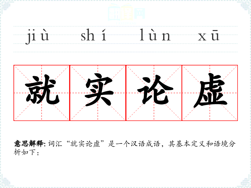 词汇“就实论虚”是一个汉语成语,其基本定义和语境分析如下: