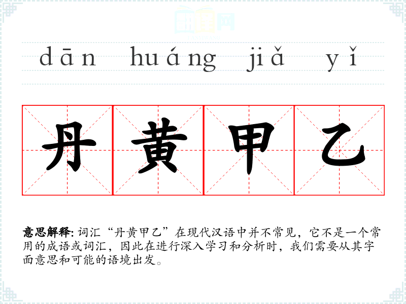 词汇“丹黄甲乙”在现代汉语中并不常见,它不是一个常用的成语或词汇,因此在进行深入学*和分析时,我们需要从其字面意思和可能的语境出发。