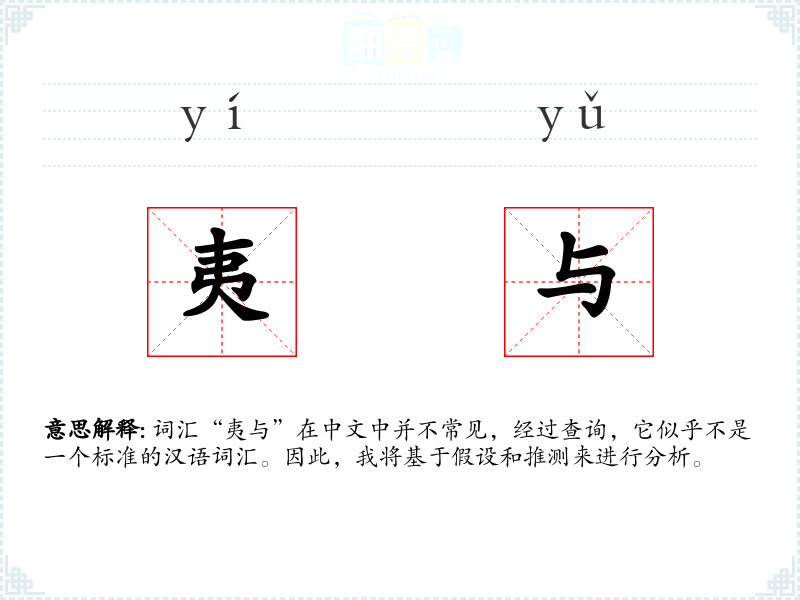 词汇“夷与”在中文中并不常见,经过查询,它似乎不是一个标准的汉语词汇。因此,我将基于假设和推测来进行分析。