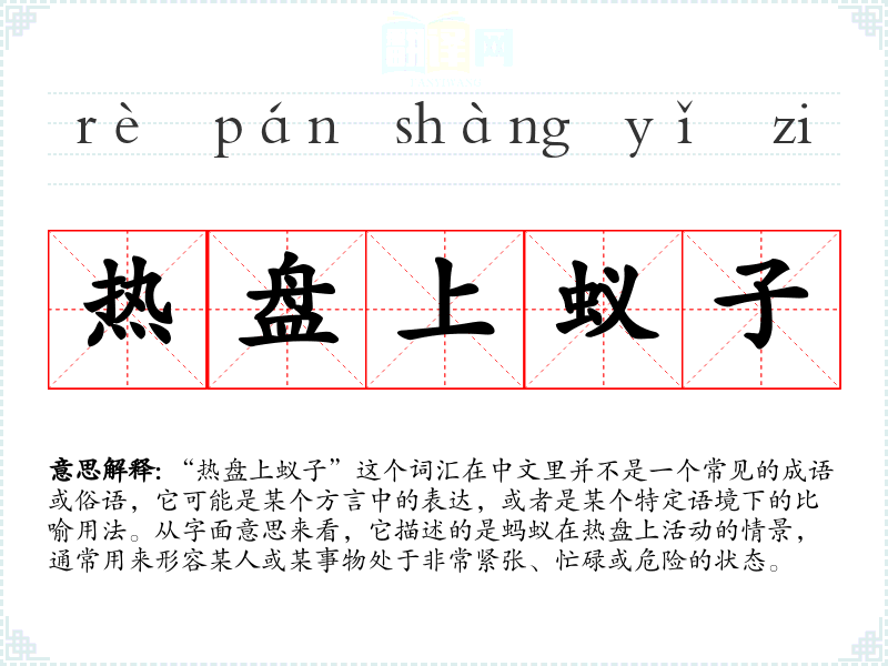 在其他语言或文化中,可能会有类似的表达来形容紧张或忙碌的状态,但由于“热盘上蚁子”并不是一个标准的中文表达,其对应的词汇可能不易找到。