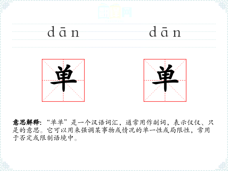 "单单"的意思解释、单单是什么意思由翻译网汉语词典查词提供。