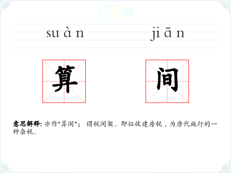 亦作"算闲"; 谓税间架。即征收建房税﹐为唐代施行的一种杂税。