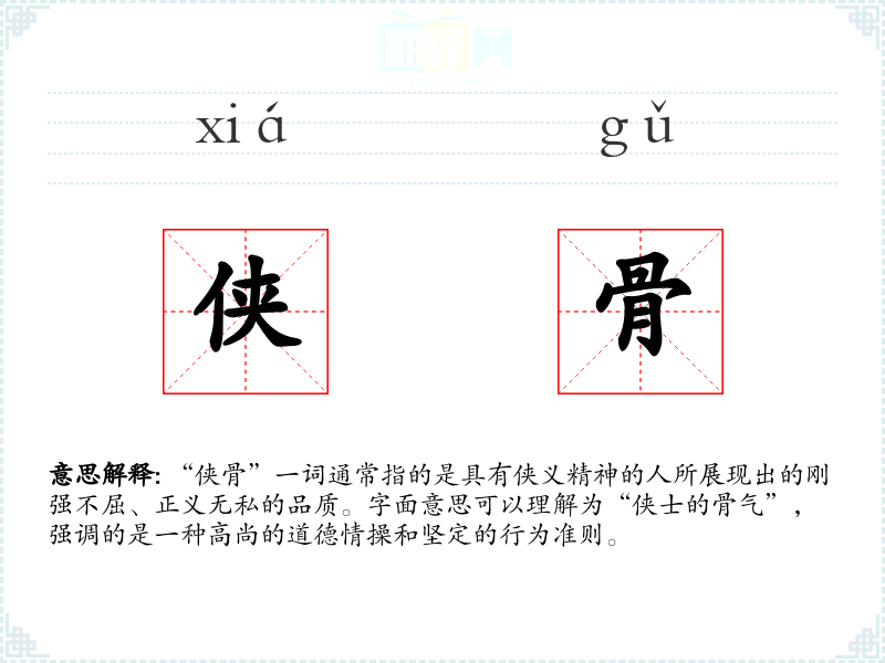 这些同义词和反义词在描述人的品质时各有侧重,但“侠骨”更强调的是一种高尚的侠义精神和坚定的道德立场。