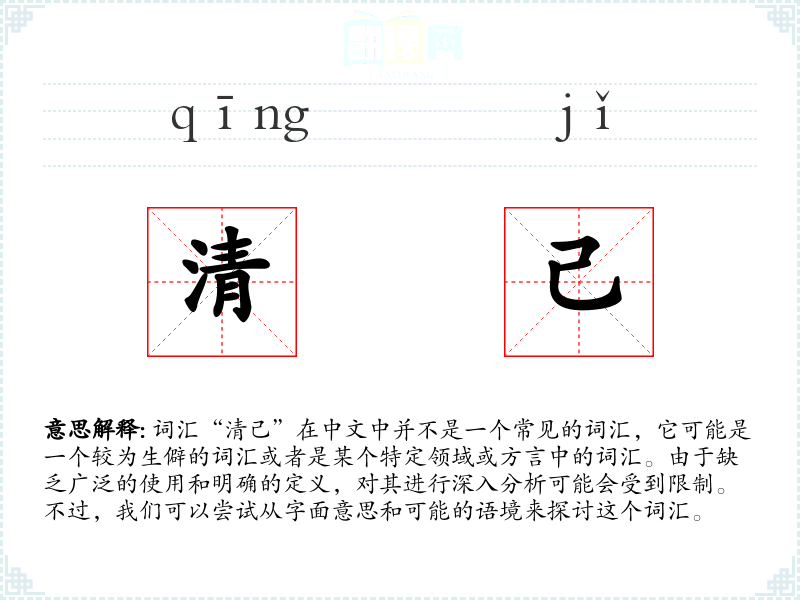 由于“清己”不是一个常用词汇,个人在生活中可能很少遇到与该词汇直接相关的经历或故事。