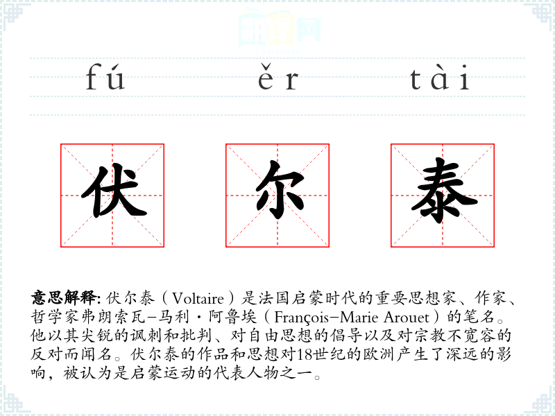 - 口语:在日常对话中,“伏尔泰”可能被提及作为启蒙思想的象征,或者用来指代那些具有批判精神和自由思想的人。