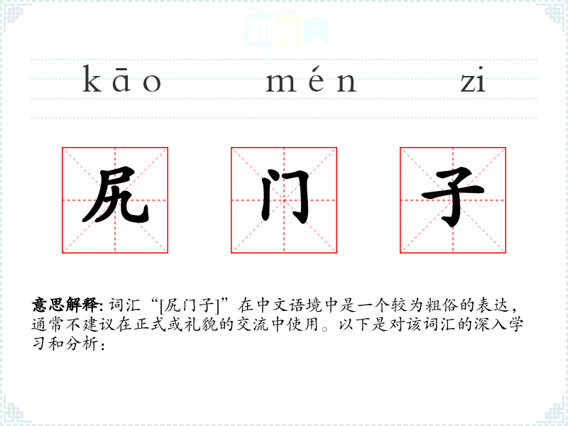 词汇“[尻门子]”在中文语境中是一个较为粗俗的表达,通常不建议在正式或礼貌的交流中使用。以下是对该词汇的深入学*和分析: