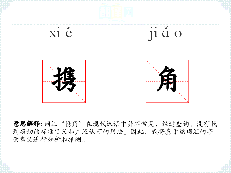 尽管“携角”不是一个常用词汇,但它展示了汉语词汇的丰富性和创造性。在语言学习和表达中,了解和探索这样的词汇可以增加我们对语言多样性的认识。
