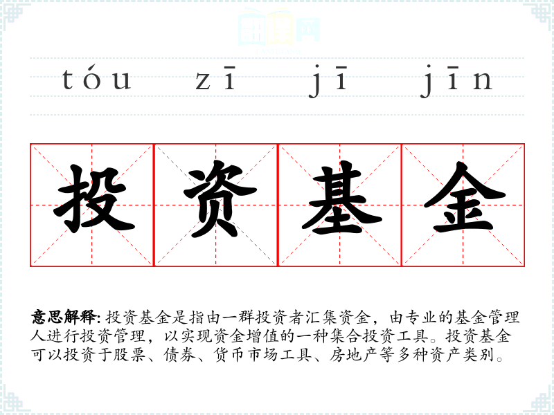 投资基金是指由一群投资者汇集资金,由专业的基金管理人进行投资管理,以实现资金增值的一种集合投资工具。投资基金可以投资于股票、债券、货币市场工具、房地产等多种资产类别。