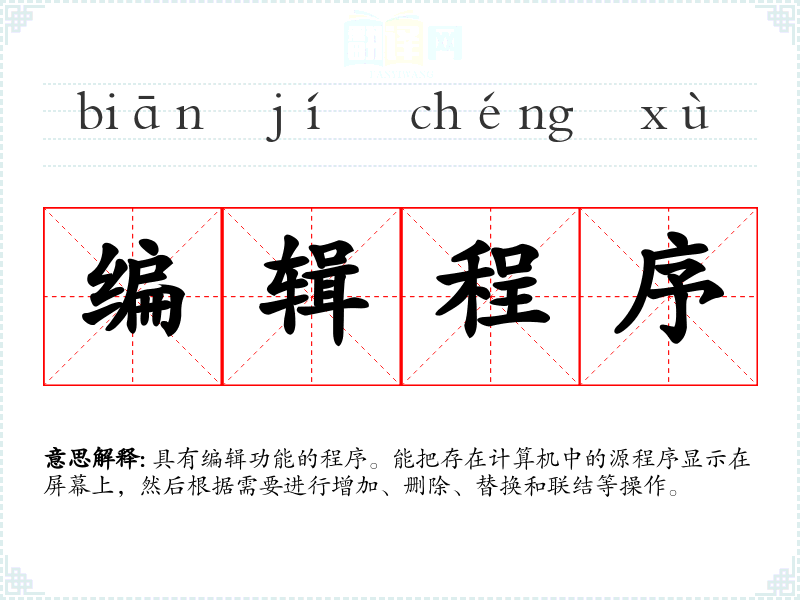 具有编辑功能的程序。能把存在计算机中的源程序显示在屏幕上,然后根据需要进行增加、删除、替换和联结等操作。