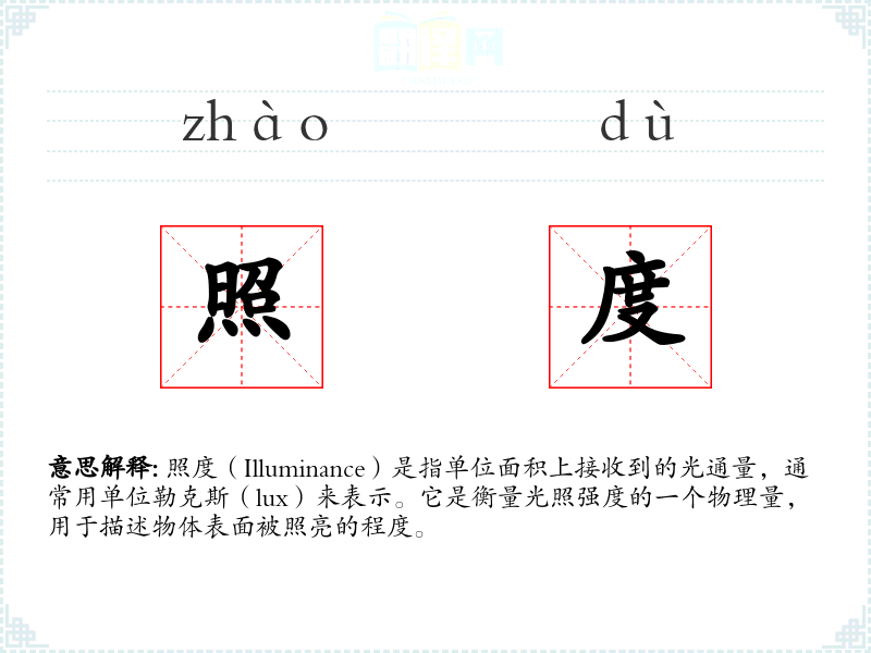 "照度"的意思解释、照度是什么意思由翻译网汉语词典查词提供。