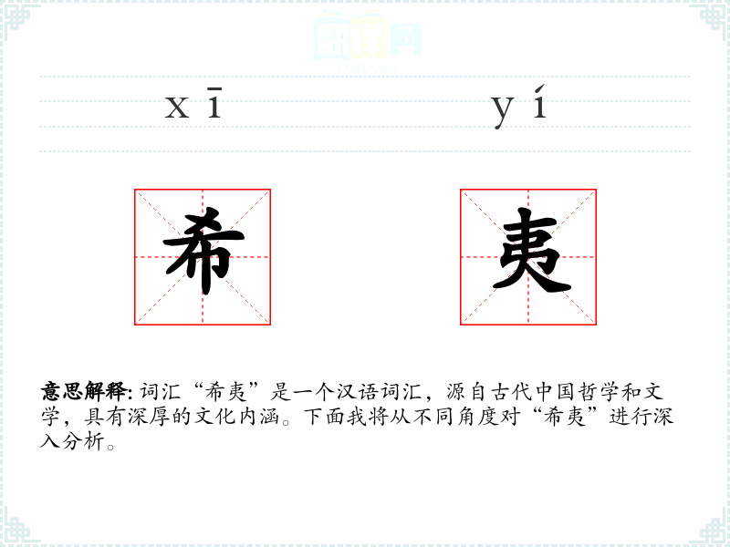 词汇“希夷”是一个汉语词汇,源自古代**哲学和文学,具有深厚的文化内涵。下面我将从不同角度对“希夷”进行深入分析。