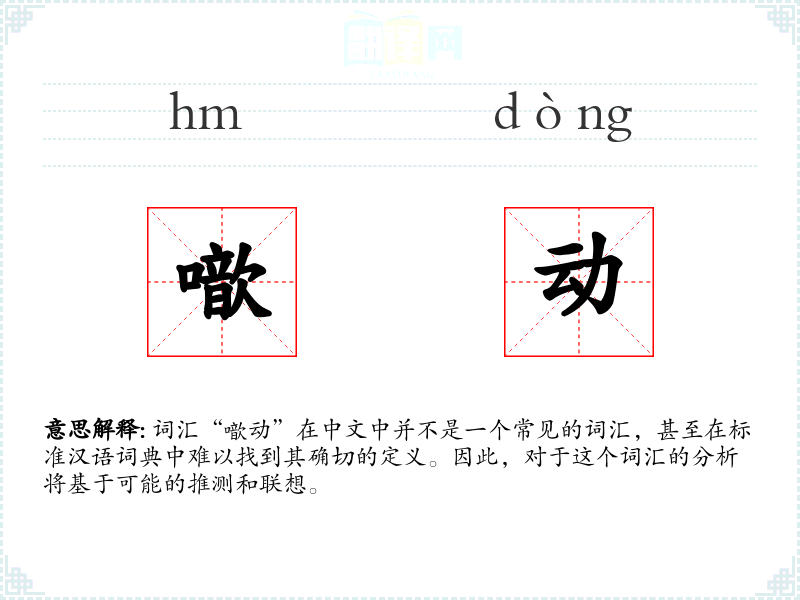 词汇“噷动”在中文中并不是一个常见的词汇,甚至在标准汉语词典中难以找到其确切的定义。因此,对于这个词汇的分析将基于可能的推测和联想。
