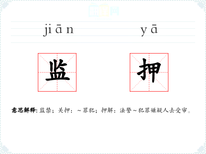 监禁;关押:~罪犯;押解:法警~犯罪嫌疑人去受审。