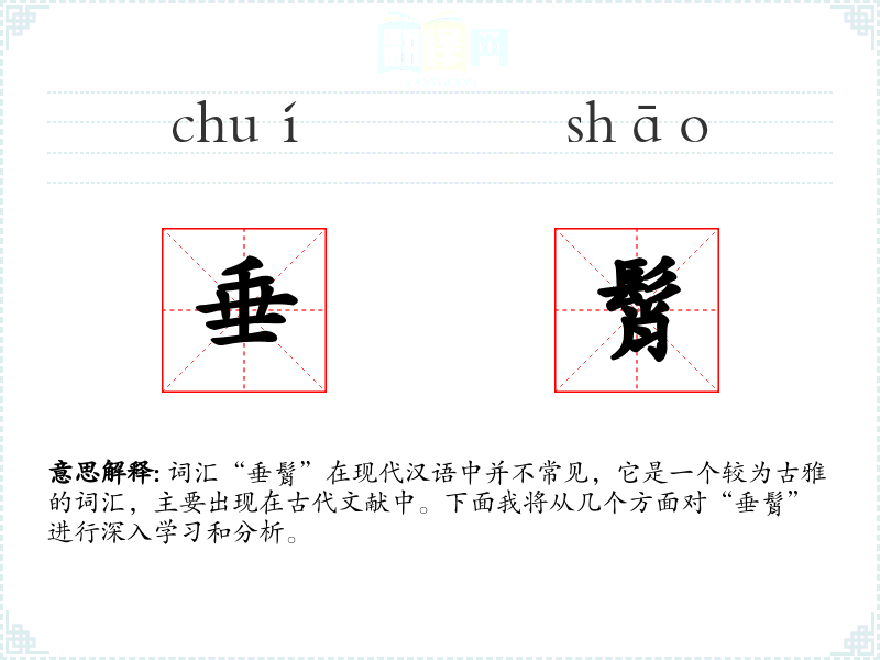 词汇“垂髾”在现代汉语中并不常见,它是一个较为古雅的词汇,主要出现在古代文献中。下面我将从几个方面对“垂髾”进行深入学*和分析。