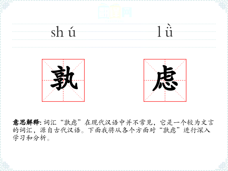 词汇“孰虑”在现代汉语中并不常见,它是一个较为文言的词汇,源自古代汉语。下面我将从各个方面对“孰虑”进行深入学*和分析。