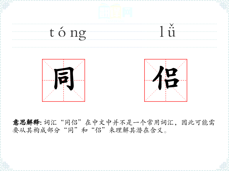 词汇“同侣”在中文中并不是一个常用词汇,因此可能需要从其构成部分“同”和“侣”来理解其潜在含义。
