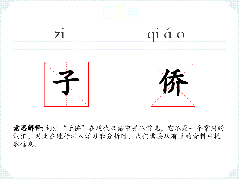 词汇“子侨”在现代汉语中并不常见,它不是一个常用的词汇,因此在进行深入学习和分析时,我们需要从有限的资料中提取信息。