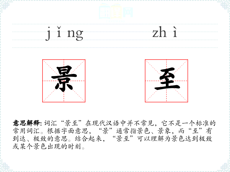 - 反义词:无(由于“景至”不是一个常用词汇,反义词不明显)