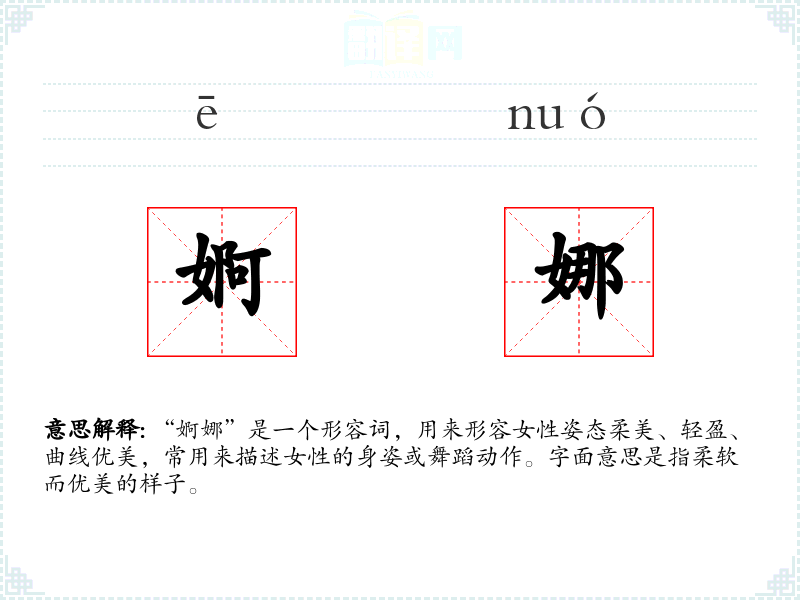 - 专业领域:在舞蹈或艺术评论中,“婀娜”可以用来评价舞者的动作和姿态。