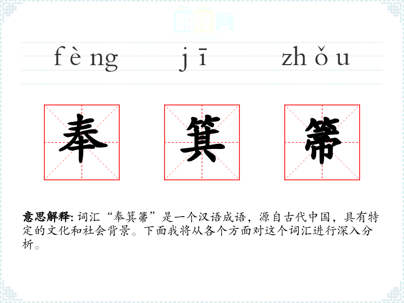 词汇“奉箕箒”是一个汉语成语,源自古代**,具有特定的文化和社会背景。下面我将从各个方面对这个词汇进行深入分析。