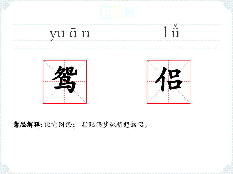 比喻同僚; 指配偶梦魂凝想鸳侣。