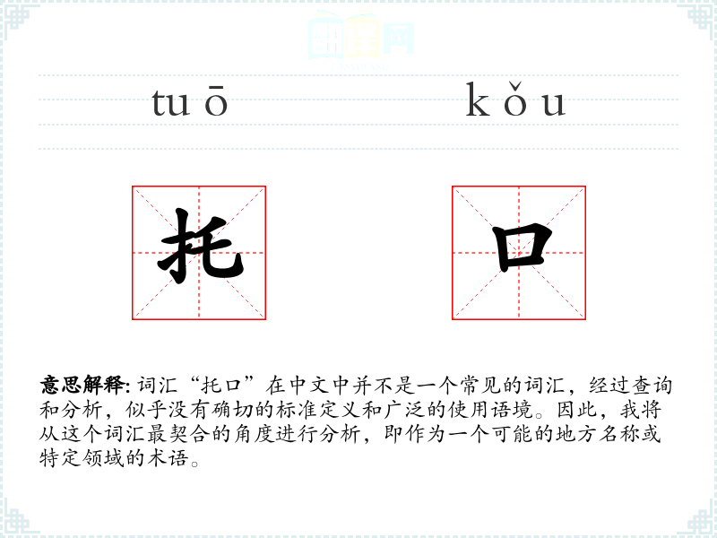 "托口"的意思解释、托口是什么意思由翻译网汉语词典查词提供。