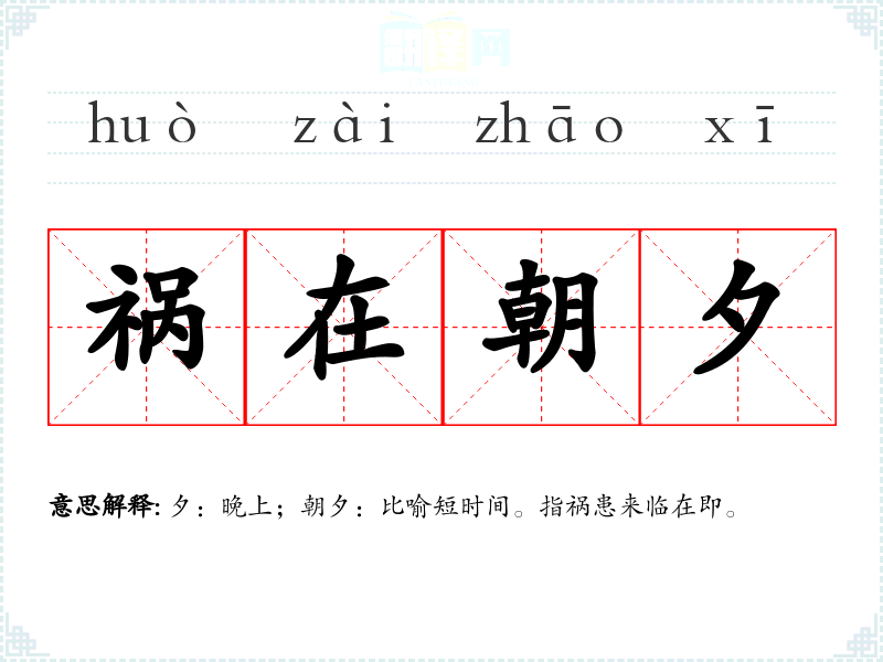 夕:晚上;朝夕:比喻短时间。指祸患来临在即。