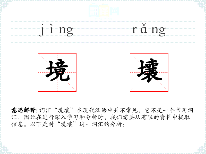词汇“境壤”在现代汉语中并不常见,它不是一个常用词汇,因此在进行深入学*和分析时,我们需要从有限的资料中提取信息。以下是对“境壤”这一词汇的分析:
