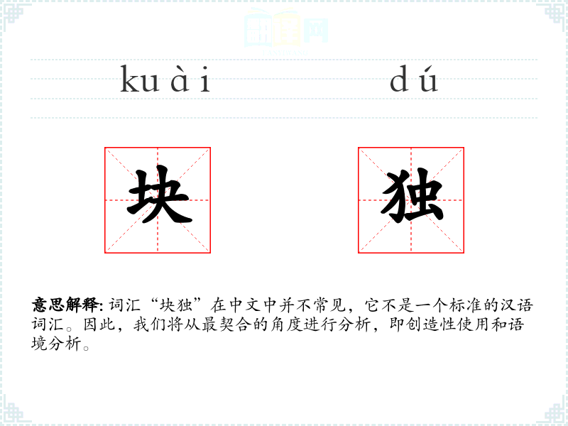 "块独"的意思解释、块独是什么意思由翻译网汉语词典查词提供。