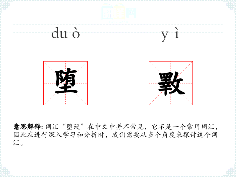 词汇“堕殁”在中文中并不常见,它不是一个常用词汇,因此在进行深入学*和分析时,我们需要从多个角度来探讨这个词汇。
