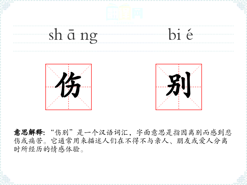 在个人生活中,每个人可能都有过“伤别”的经历,无论是毕业时的同学分别,还是亲人因工作远行。这些经历加深了对这个词的理解和情感共鸣。