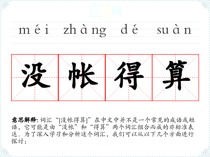 词汇“[没帐得算]”在中文中并不是一个常见的成语或短语,它可能是由“没帐”和“得算”两个词汇组合而成的非标准表达。为了深入学习和分析这个词汇,我们可以从以下几个方面进行探讨: